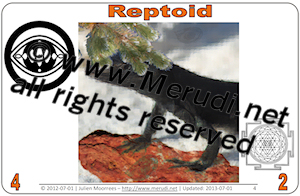 Via deze kaarten kunt u contact maken met de kosmische straal van de Reptiel. De kaart met enkel het symbool (rechts) is krachtiger dan de kaart met de tekening (links). Voel wat op dit moment de juiste kaart om te gebruiken is.